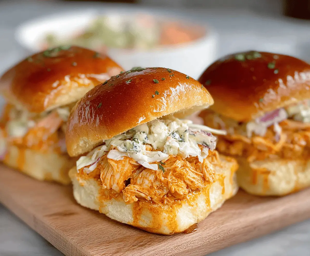 I love making these sliders for game day or casual get-togethers because they’re so quick to eat and always a crowd-pleaser. I usually shred the chicken after cooking it in that spicy Buffalo sauce to make sure every bite has that perfect saucy touch. Plus, adding a crisp celery stick or a little cool slaw always gives a nice crunch that I can’t get enough of!