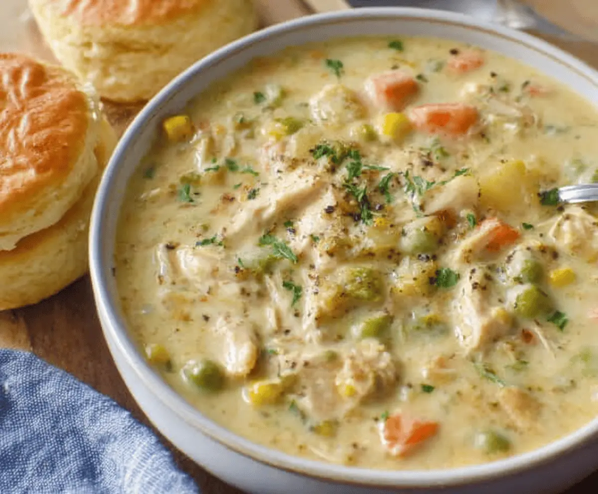 Chicken Pot Pie Soup is like your favorite comfort food in a cozy bowl. It’s filled with tender chunks of chicken, creamy broth, carrots, peas, and potatoes that give it that classic pot pie feel without the crust on top. The creamy texture and the mix of hearty veggies make it a perfect meal for chilly days or when you want something warm and filling.