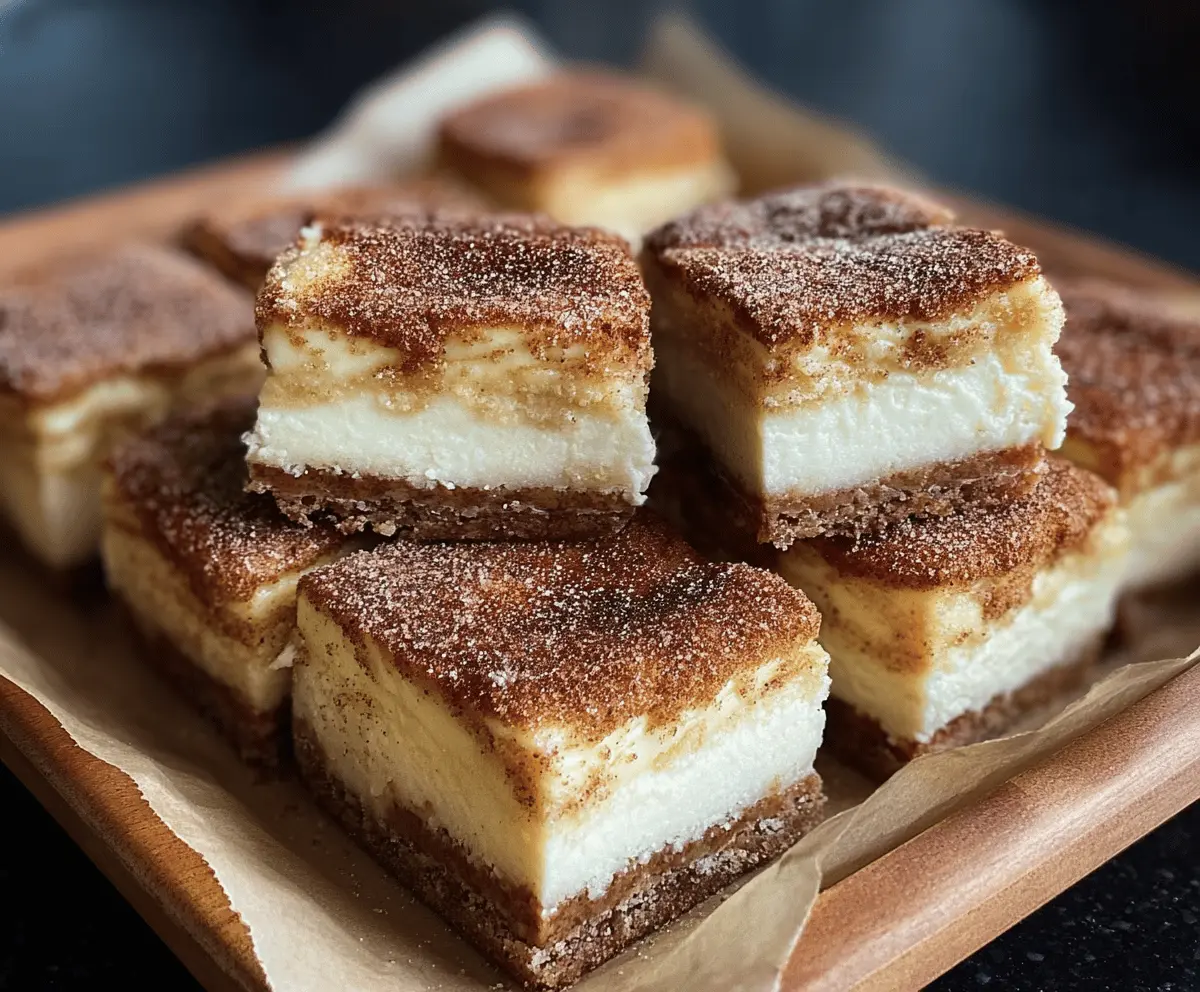 I love making these bars because they’re such a fun twist on two classic favorites—cheesecake and churros. What’s great is that you get the best of both worlds: the soft creaminess of cheesecake paired with that crispy, cinnamon-covered crust. I usually sprinkle a little extra cinnamon sugar on top for a perfect finishing touch, and it always makes everyone smile.