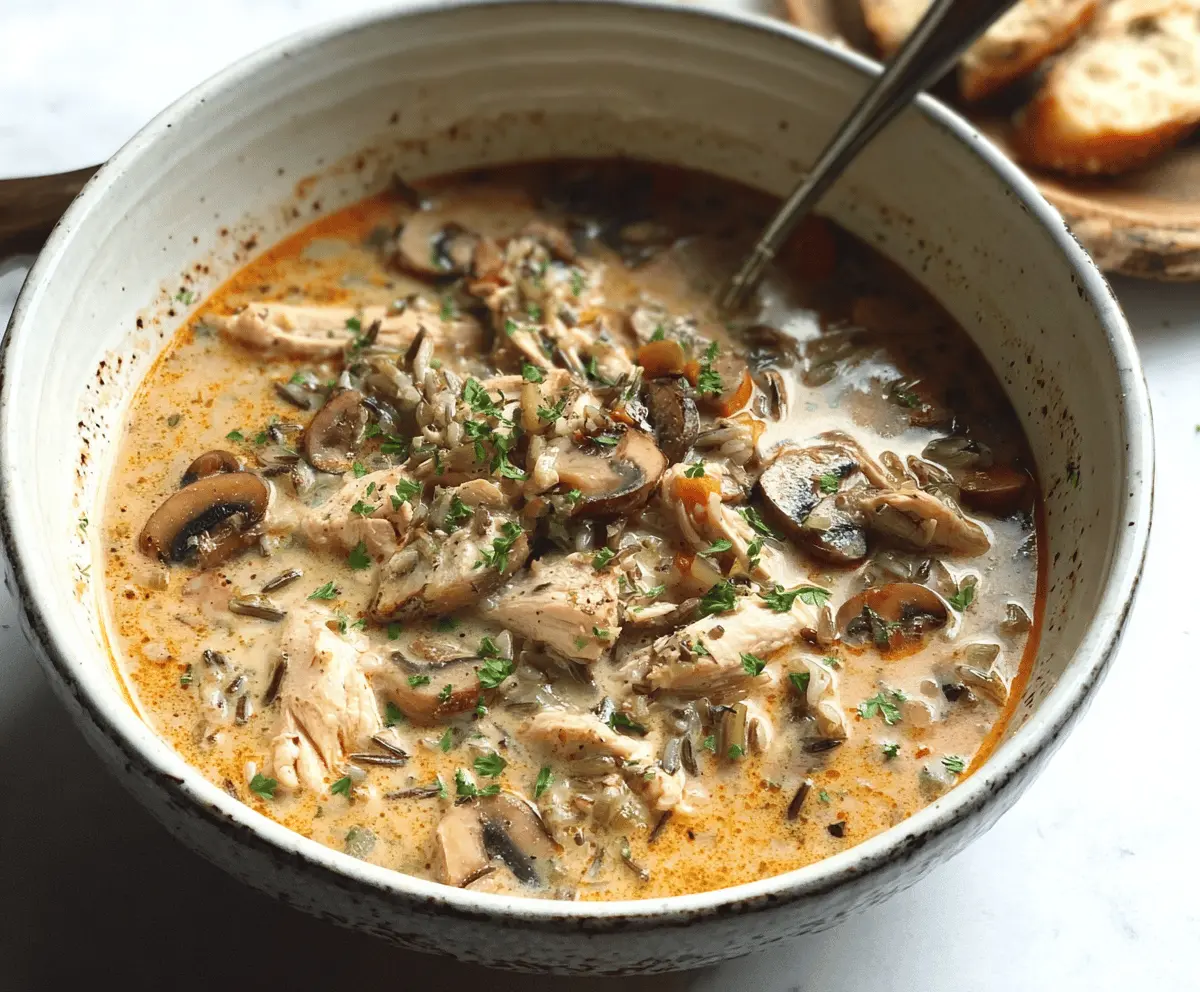 Creamy Mushroom Chicken and Wild Rice Soup is a comforting bowl filled with tender chicken, earthy mushrooms, and nutty wild rice all swimming in a rich, creamy broth. This soup feels like a warm hug on a chilly day, with its hearty textures and subtle flavors that come together so nicely.