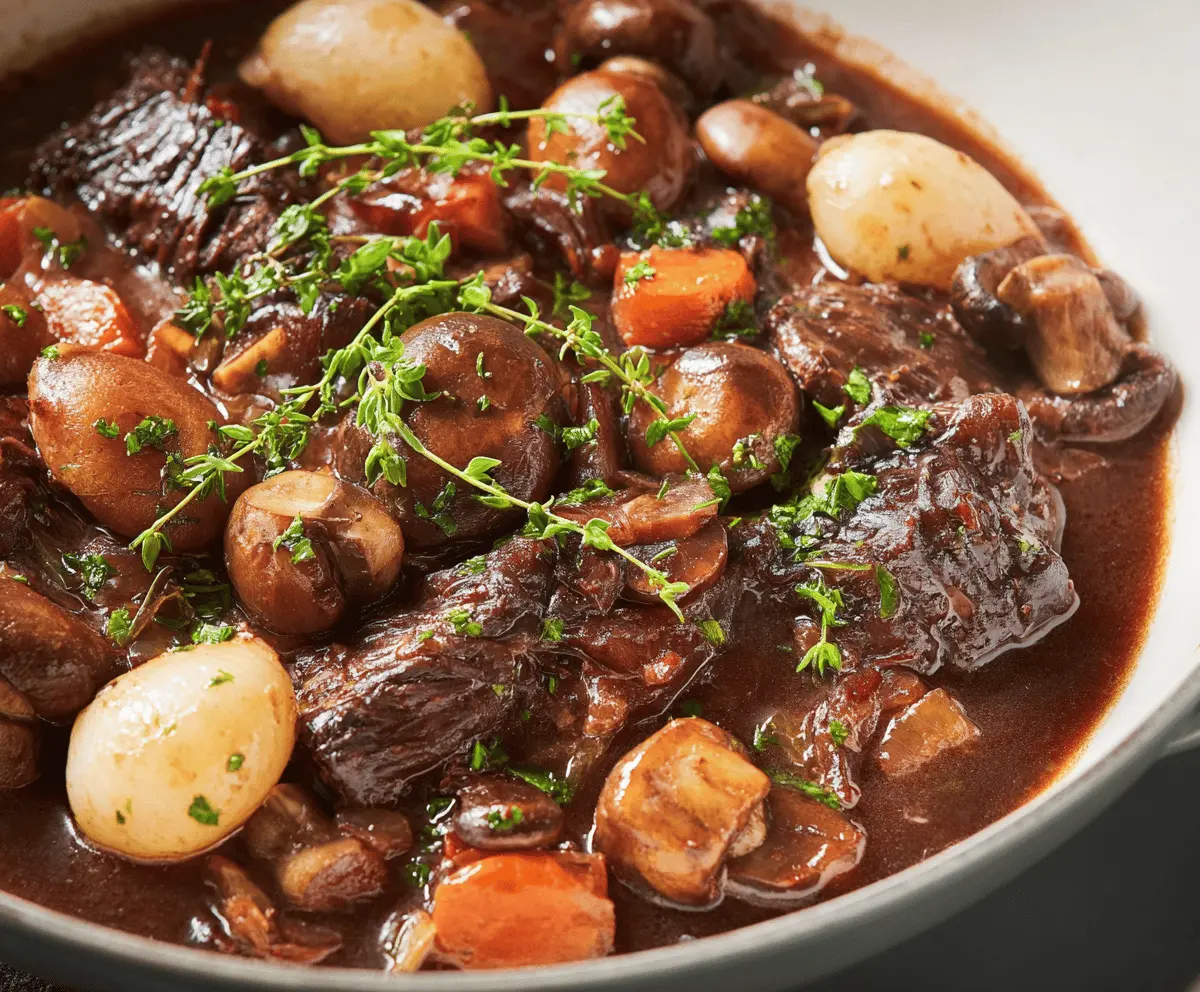 French Beef Bourguignon is a classic, hearty stew that’s full of tender beef, rich red wine, earthy mushrooms, and sweet pearl onions. It’s one of those dishes where all the flavors blend together slow and steady, creating something deep and comforting that’s perfect for chilly evenings.