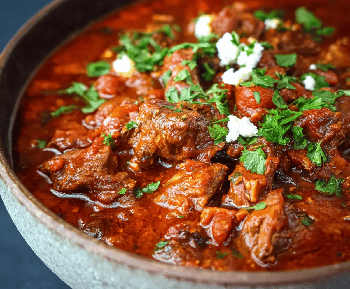 Greek Style Beef Stew in a Tomato Sauce is a hearty and comforting dish that brings together tender chunks of beef slow-cooked in a rich tomato sauce, infused with traditional Greek flavors like garlic, oregano, and a hint of cinnamon. The sauce is thick and flavorful, wrapping each piece of beef in a cozy, warm hug of spices and tangy tomatoes.