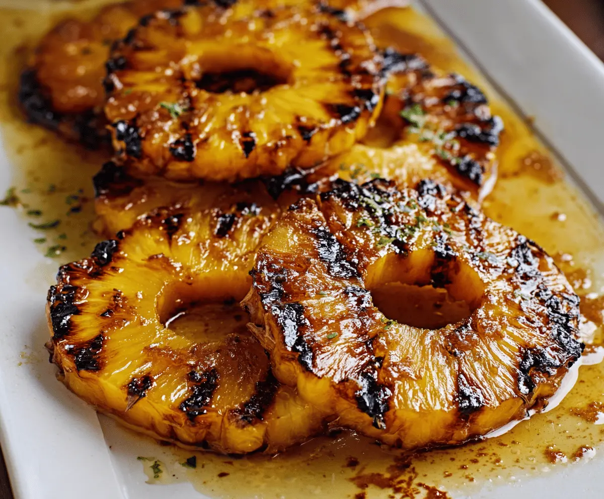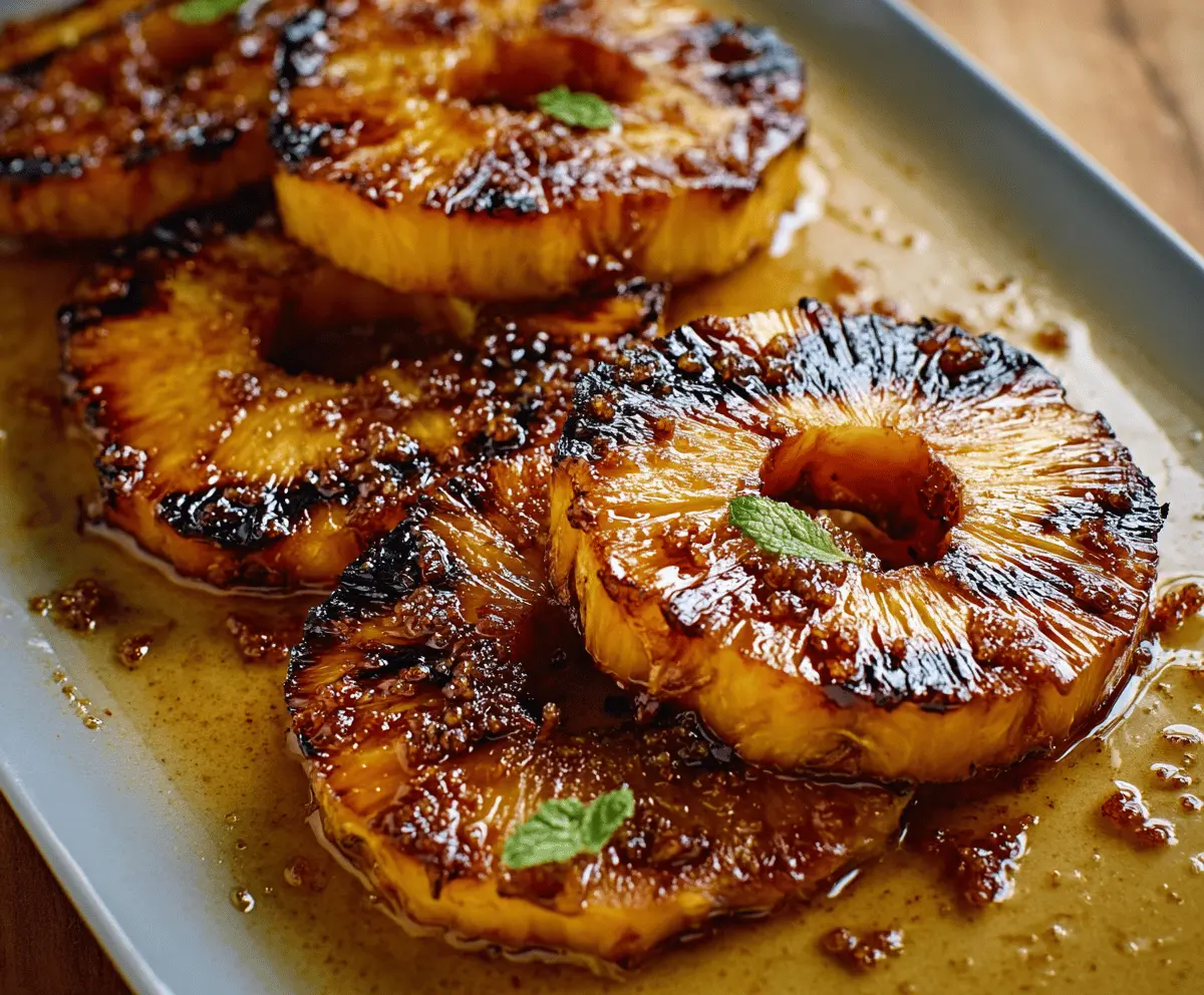 Remove the pineapple slices from the grill and place them on a serving plate. Spoon any leftover glaze over the top. Garnish with fresh mint or parsley if you like. Serve warm, and enjoy as is or with a scoop of vanilla ice cream or whipped cream for an extra special treat.