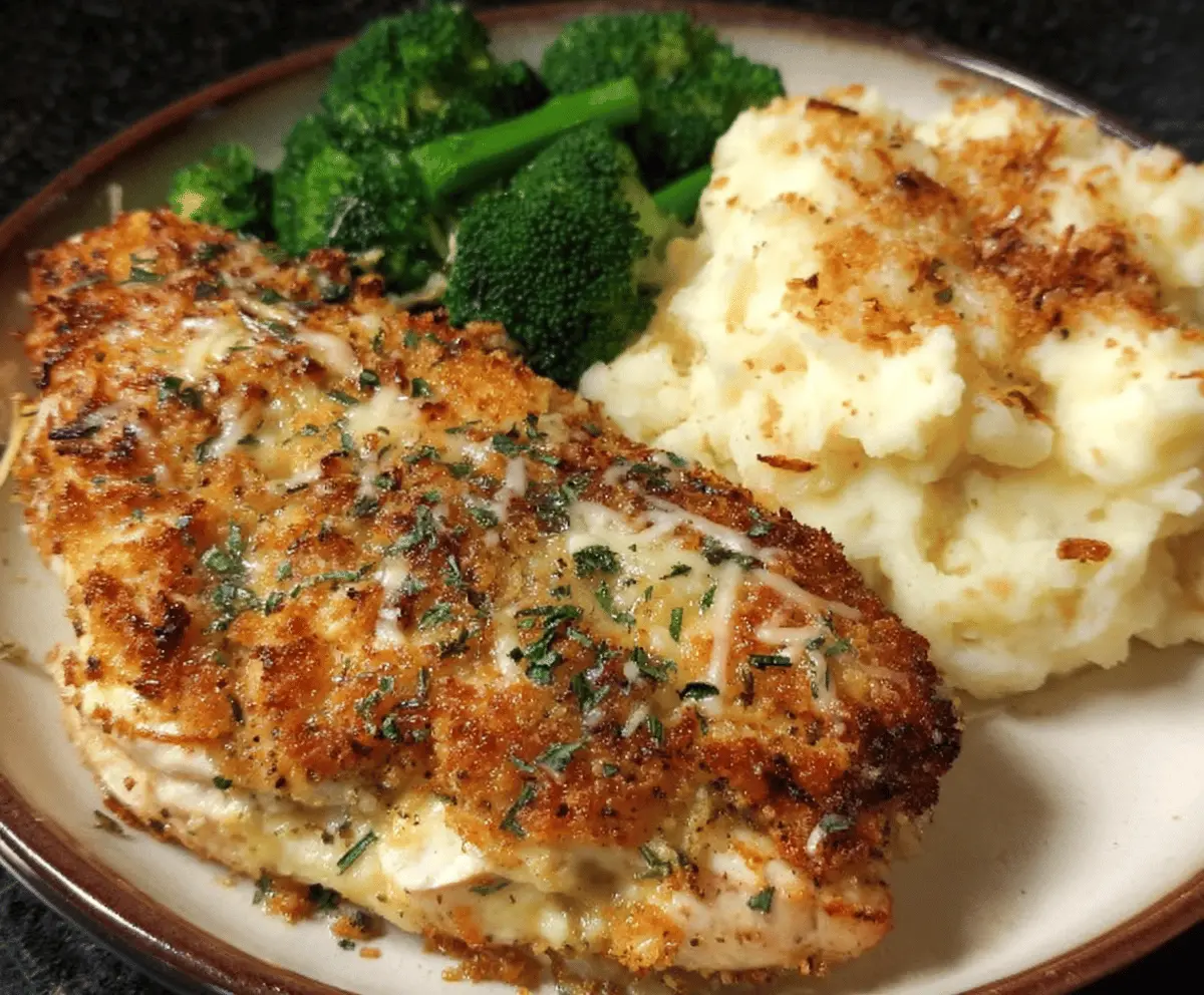 Remove the chicken from the oven and let it rest for a few minutes to lock in the juices. Sprinkle with fresh chopped parsley for a pop of color and fresh flavor. Serve your Parmesan Chicken with mashed potatoes and steamed vegetables for a complete and tasty meal.